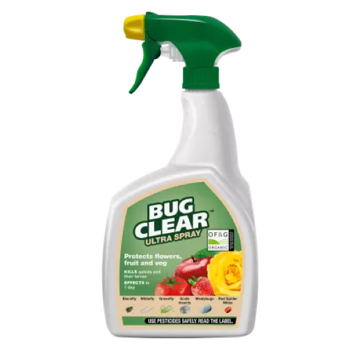 BugClear™ Ultra Spray ready to use spray controls aphids, scale insects, mealy bugs, red spider mites and other mites. It is ideal for fruit, vegetables and ornamentals, and can be used in organic gardening. Effects seen in just 1 day. Based on rapeseed oil, the product is fully certified for use in organic gardening. Bottle is made from 100% recycled material and can be recycled.