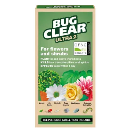 BugClear™ Ultra 2 concentrate controls aphids, mealy bugs, red spider mites and other mites and now also boxwood caterpillar and lily beetle. It is ideal for fruit, vegetablesand ornamentals, and can be used in organic gardening. Effects seen in just 1 day. Based on rapeseed oil, the product is fully certified for use in organic gardening. Bottle is made from 100% recycled material. Due to regulations bottle cannot yet be recycled.