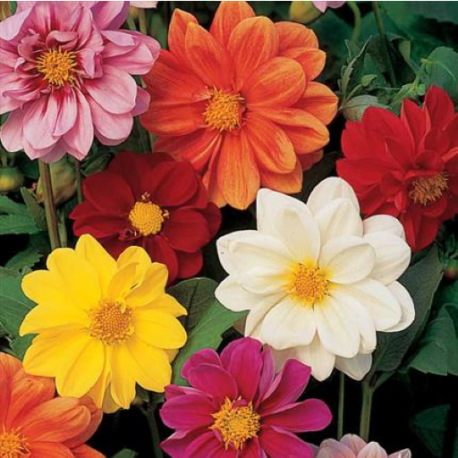 Excellent bedding dahlia, medium sized double and semi-double flowers in a fine colour range. Stunning flowers with green or bronze foliage. Easy to raise from seed. Invaluable material for autumn floral arrangements. HHP - Half hardy perennial. Height 60cm (2').