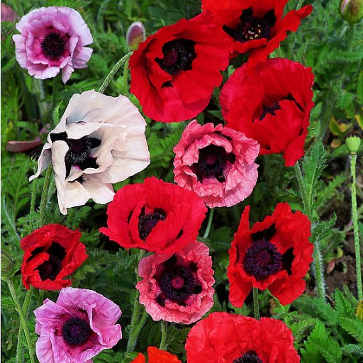 A breath-taking semi-dwarf mixture producing robust plants with red, orange, salmon, mauve, rose, pink and white flowers 15-20cm (6-8") across, all with a distinctive black centre. Height 50cm (20").