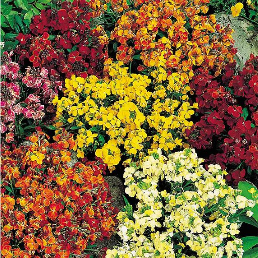 Contains many of the beautiful colours seen in Persian Carpets including cream, apricot, orange, rose, purple and gold. The most popular spring bedding item - very fragrant. Grow as a hardy biennial. Height 38cm (15").