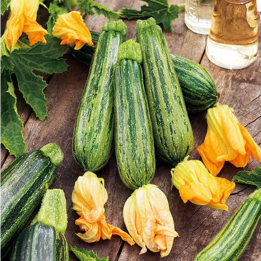 Attractive, striped fruit that is an old Italian variety with a sweet and nutty flavour. Produces smaller plants, perfect for containers and the veg bed. Productive plants crop all summer long, perfect to pick when 20cm long. Harvest July-September. Height 40-50cm (16-20"); spread 50-60cm (20-24").