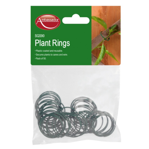 Green plastic covered wire plant rings 25mm diameter. Pk of 50