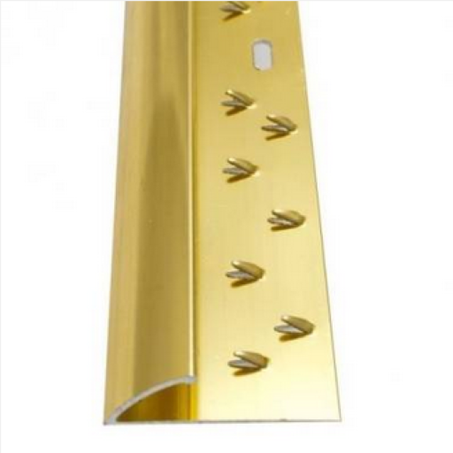 Handy single edge door bar in an attractive gold finish. Sold per length at 900mm which normally fits a standard door opening. A heavy duty professional quality aluminium door bar that is designed to grip carpets in place where they join vinyl either side of a door opening.