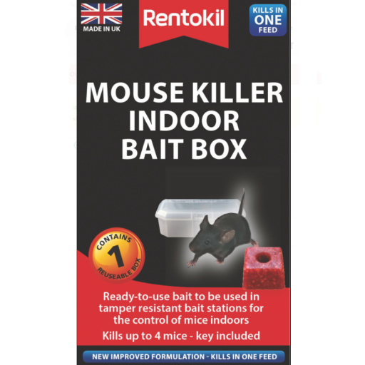 - A pre-baited box containing enough poison to kill up to 4 mice. Supplied with a key so you can refill and reuse. The tamper resistant box is ideal when children
