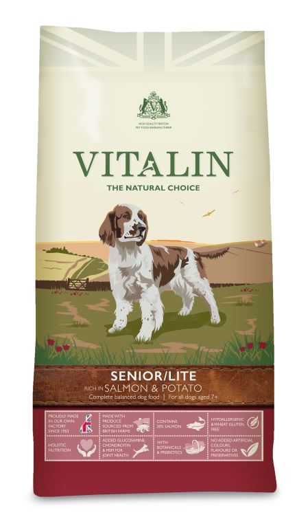 Vitalin Senior/Lite has been carefully formulated as a nutritionally complete and balanced recipe to help meet the needs of senior and/or overweight dogs. This hypoallergenic and wheat gluten free food contains high quality protein from 100% British Salmon with potatoes, nutrient packed botanicals and joint supplements.