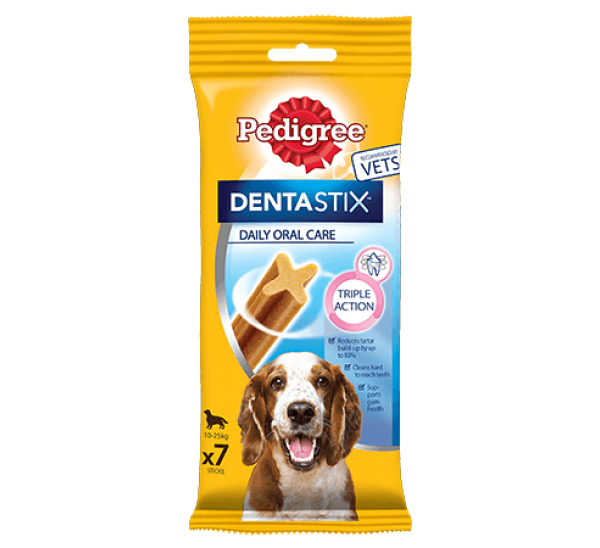 PEDIGREE® Daily DentaStix® has a unique X shape and, when fed daily, the combination of its gently abrasive texture and active ingredients, is scientifically proven to help reduce tartar build-up by up to 80%.