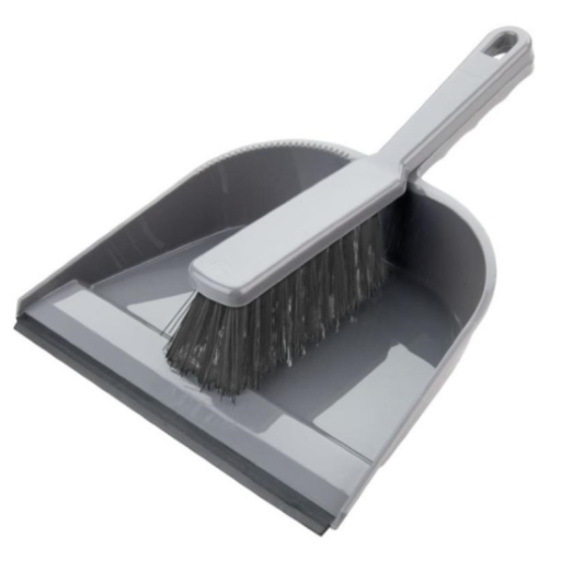 Neat plastic dustpan, with matching soft fibred brush.