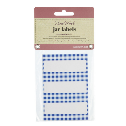 Give your home made treats an extra-special, personal touch with this pack of self adhesive labels for jars, from KitchenCraft Home Made. Decorated in a pretty blue gingham style, these label stickers have a blank space, so you can write the name of your unique jam recipe, or a personalised gift message. And they're not just jam labels - you can use them to mark up home made cordials, chutneys and other treats too. You get 30 in the pack.