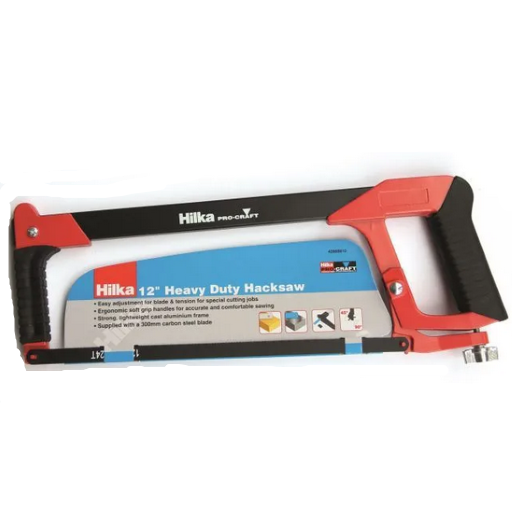 12" (300mm) with easy adjustments for changing blades and tension, with 45 and 90 degree angles.