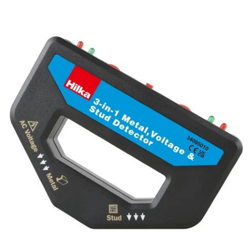 3-in-1 combined unit that detects live electricity cables, metal pipes for water or gas, as well as wooden studs and battens, displaying a red or green LED light and emitting an audible signal. Adjustable for accurate reading. Supplied with full instructions. Requires 1 x 9V battery (included).